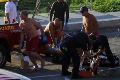 Surfing Santa snuck away from the North Pole recently, as he does each holiday season, to catch some fun waves at the Hermosa pier. He acknowledged he wasn’t very generous with waves this past year but promised to make up for it in 2018, if surfers behave and are generous with fellow surfers, even fellow stand-up paddleboard surfers.