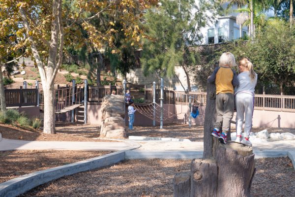 The nature-inspired playground, located on Valley Drive, features a winding accessible pathway that weaves among concrete slides and braided rope obstacle courses.