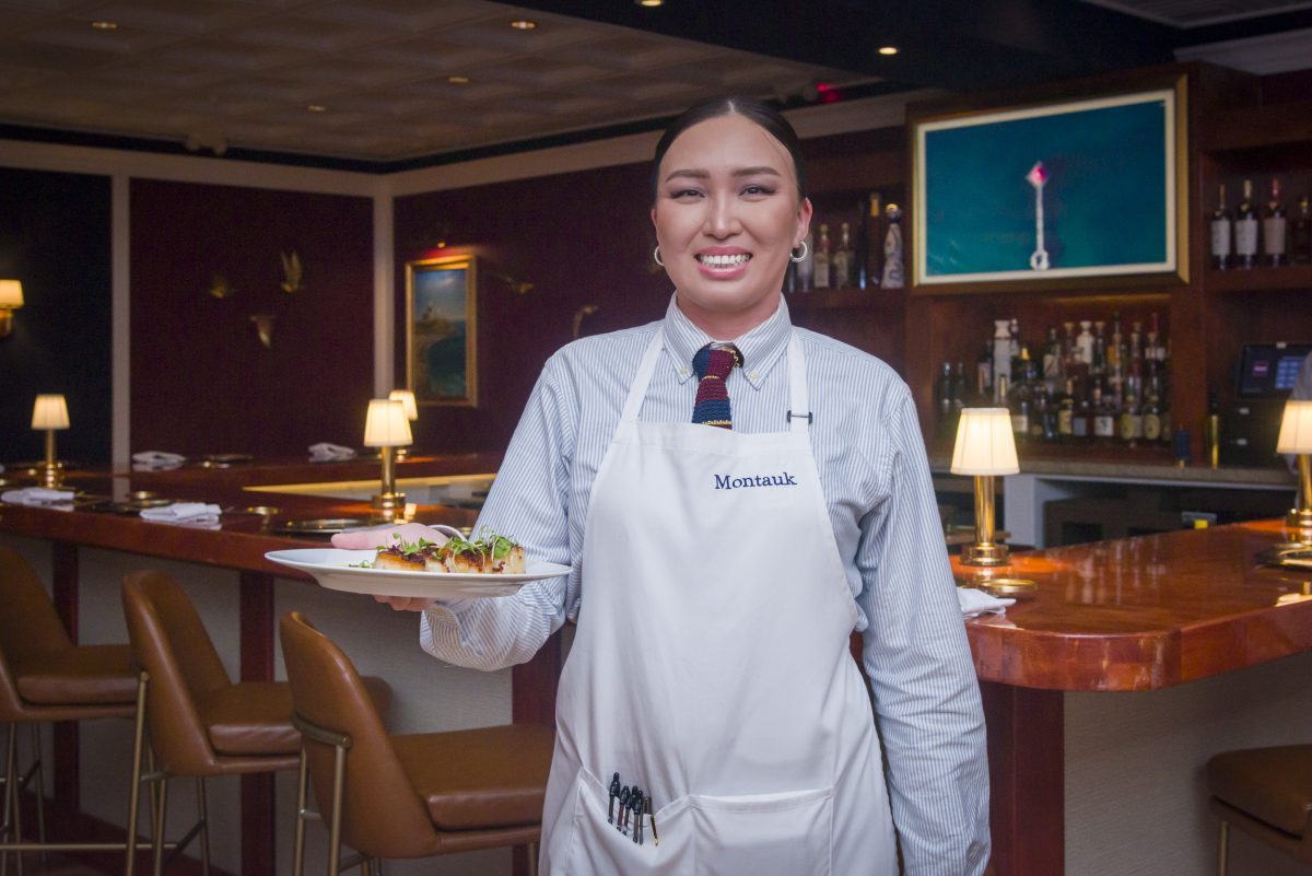 Montauk server Susie Jambal with jumbo scallops.