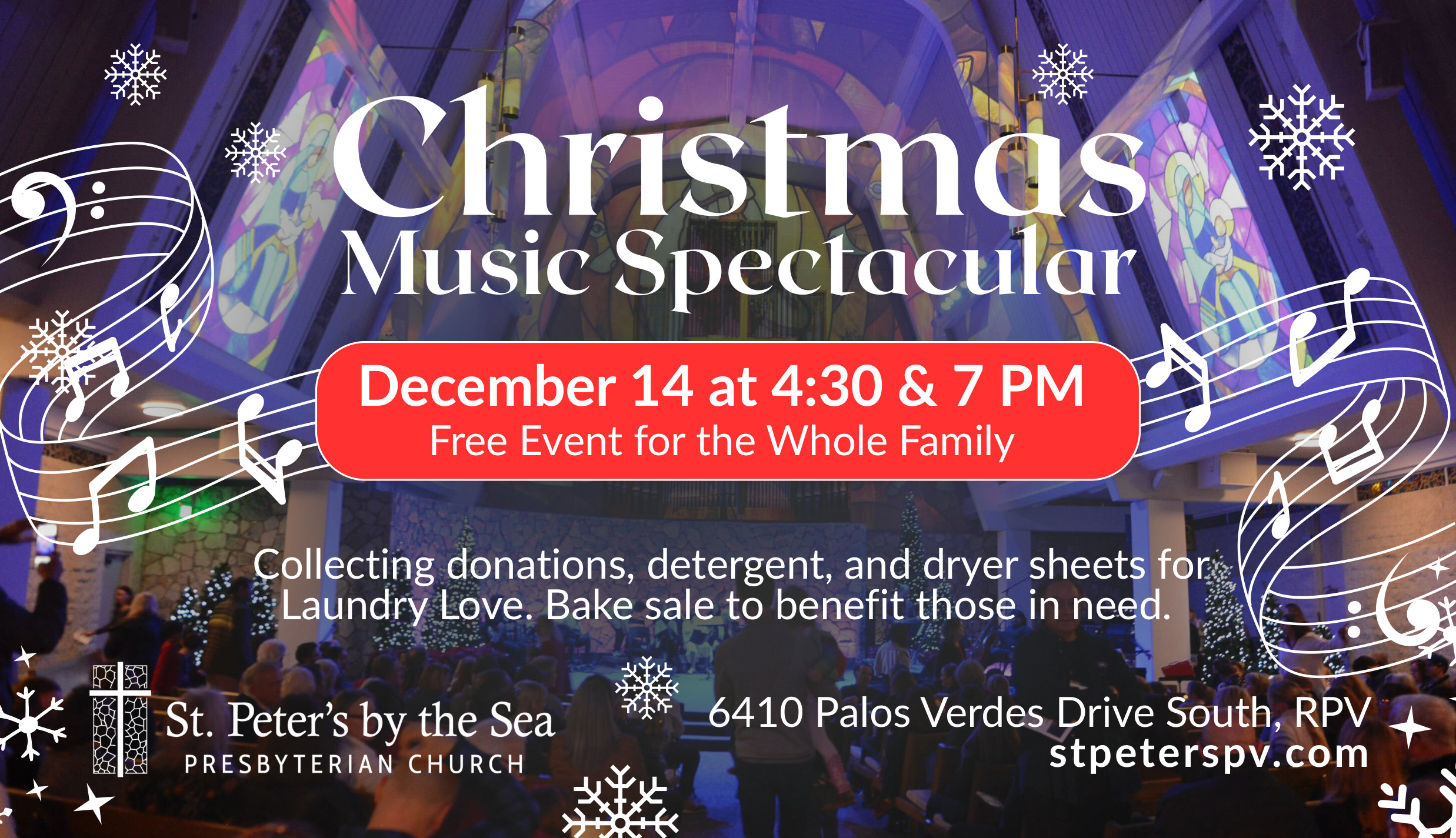 Free for the whole family at St. Peter’s by the Sea. Collecting donations, detergent and dryer sheets for Laundry Love. Bake sale to benefit those in need. 4:30 p.m. and 7 p.m. 6410 Palos Verdes Drive South, Rancho Palos Verdes. More information at stpeterspv.com.