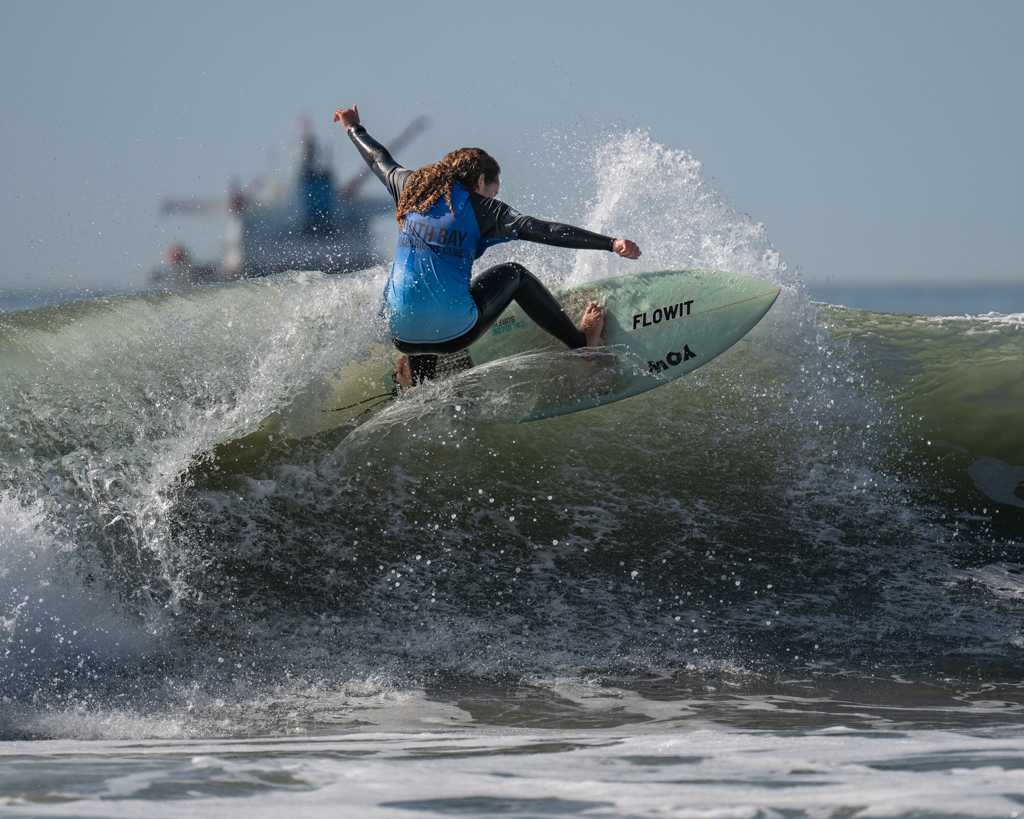 Burge and several other top SBBC surfers had a busy Saturday, also competing for the team against other California surf clubs at the West Coast Boardriders contest in Huntington Beach.