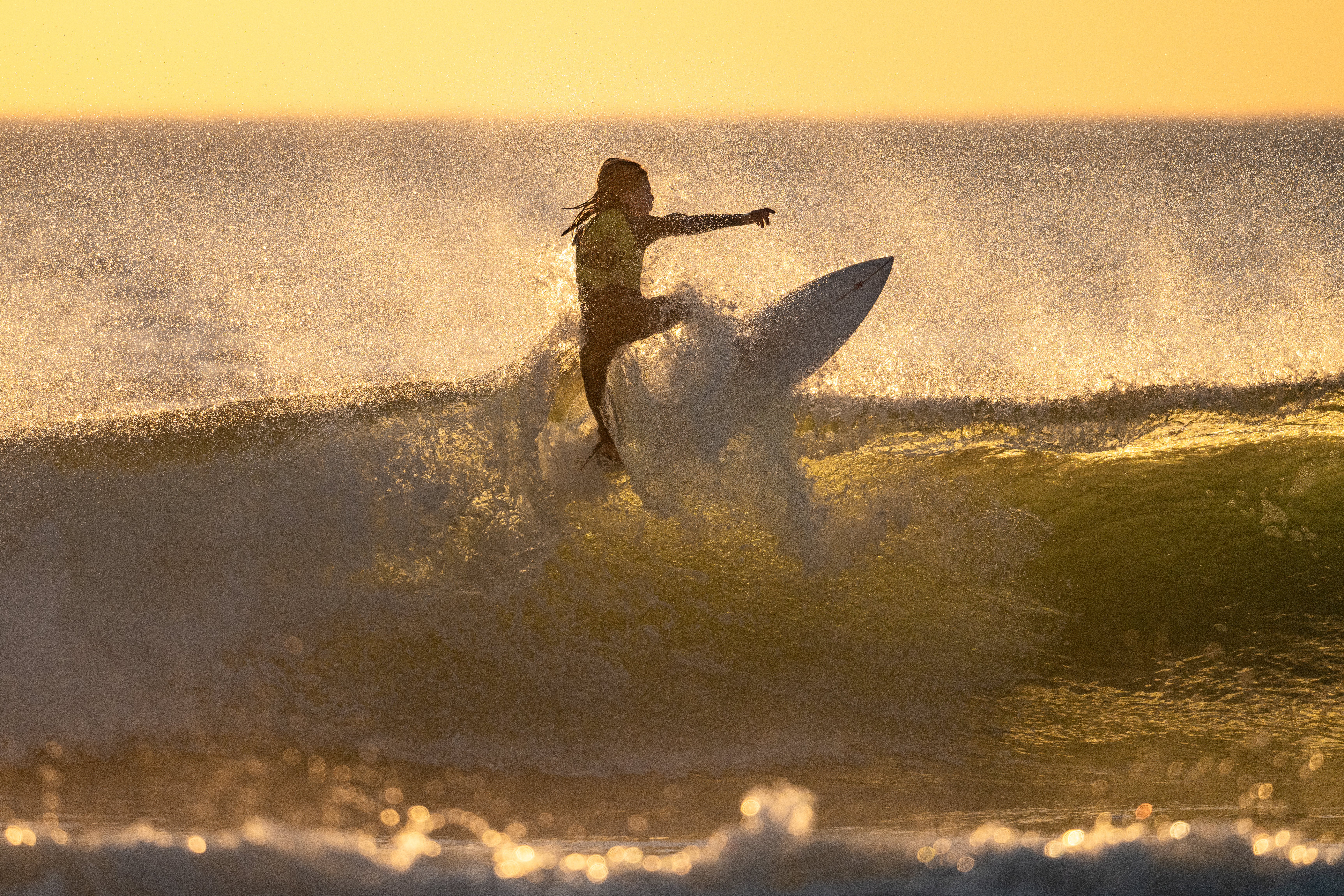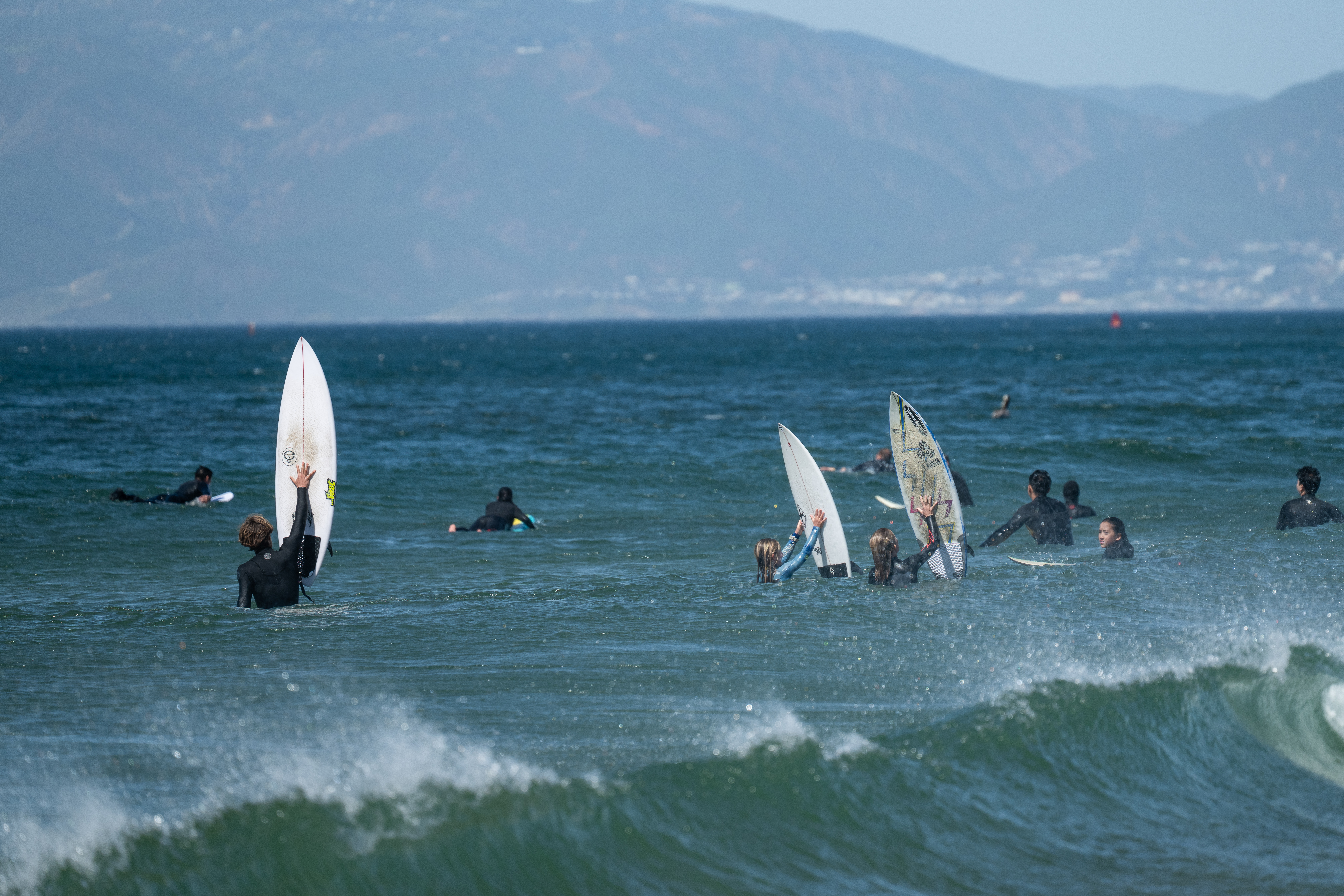 The day began with waves in the head-high range with good shape. As the tide got higher, the outside sand bars of El Porto became submerged, forcing surfers to ride the inside sections. However, once the tide dropped again, the outer bars improved in time for the finals.Β