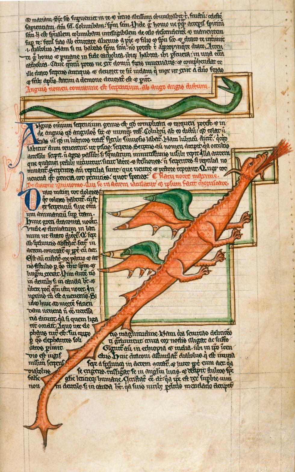 Beasts – dragon and snake on manuscript page