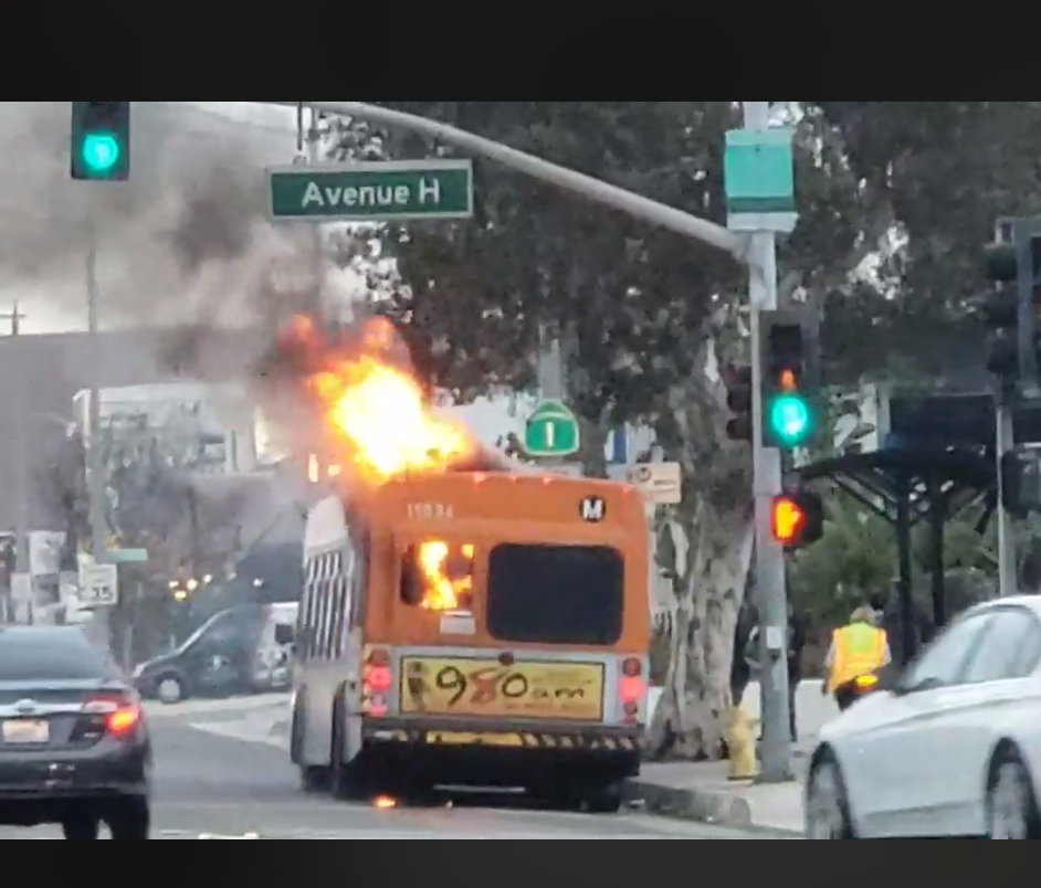 Supervisor Janice Hahn called LA Metro to quickly phase out its diesel-engine buses after a bus on route 232 caught fire at Pacific Coast Highway and Avenue H on Tuesday morning. No one was injured in the blaze.