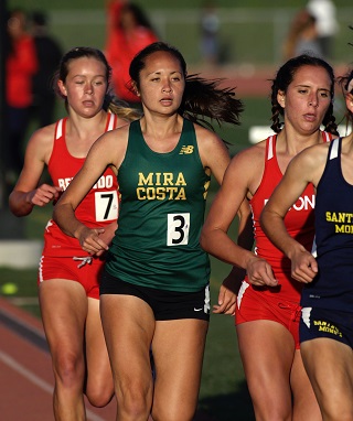 Mira Costa competed in the Palos Verdes Distance Day event last weekend and was led by cross country state champion Melia Chittenden who won the 1600m with a time of 5:09.99 ahead of teammate Gaby Guerrero (3rd, 5:33.55).