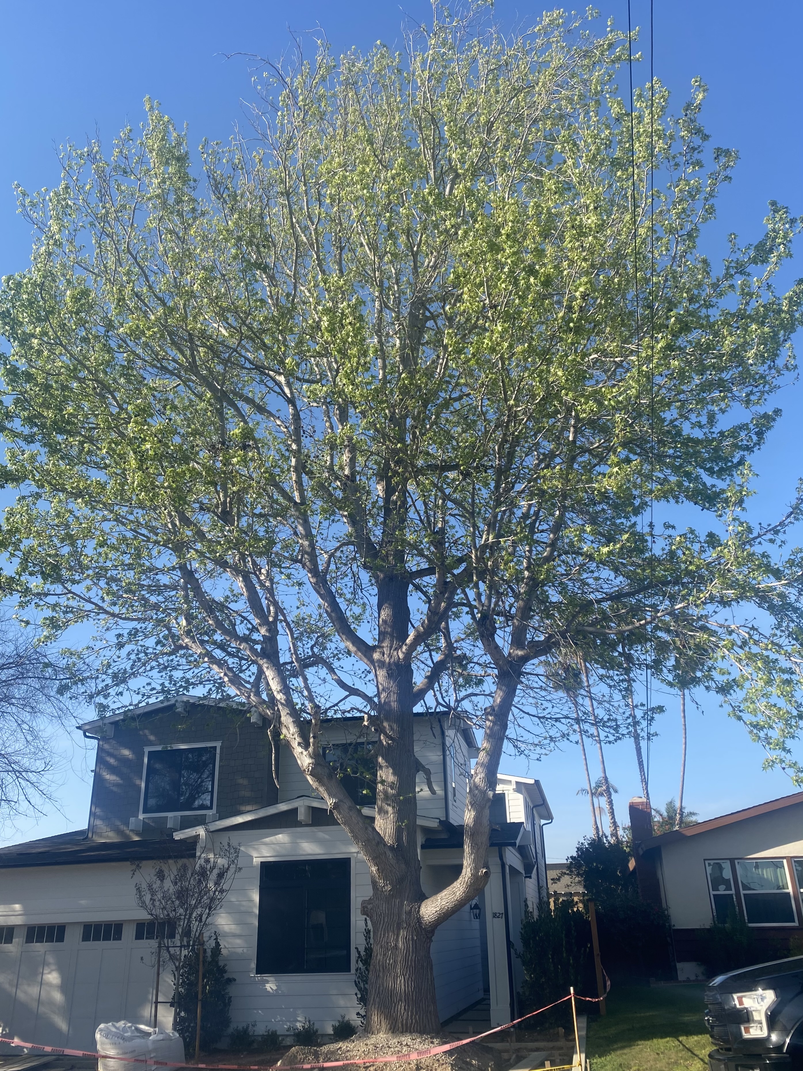 Across the street, at 1826 9th St., a different developer made a different choice during a similar construction project a few years earlier. The grand old tree in that front yard was preserved. It is thriving.