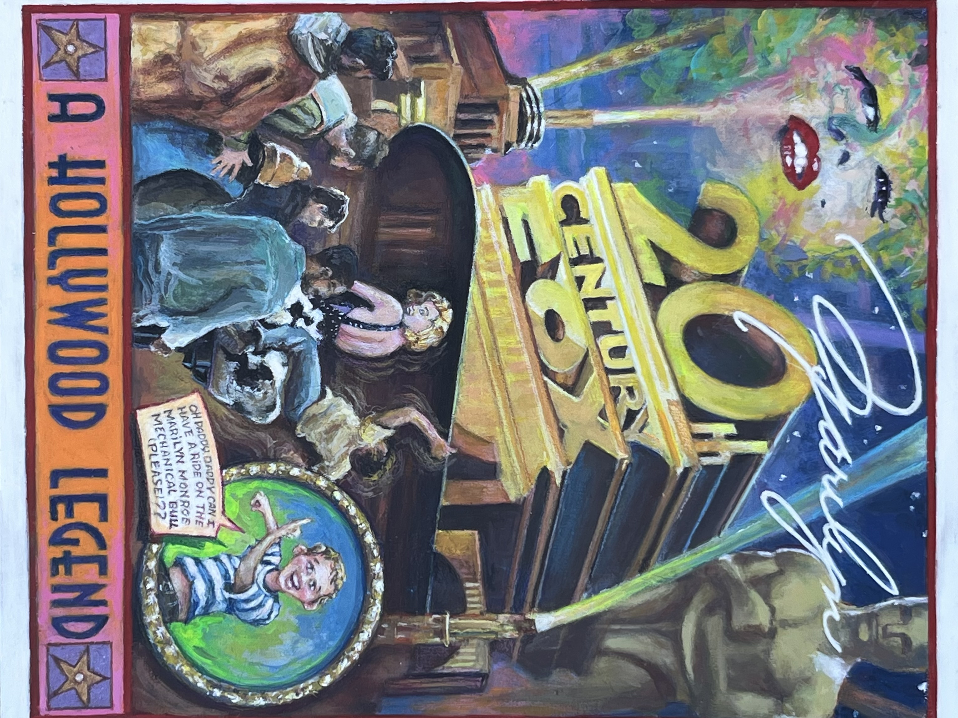 The picture that resulted was adeptly composed, a visual non sequitur that, again, did not seem to go overboard even in this age of intensive moral scrutiny. However, in a sort of word bubble, a young boy is exclaiming, “Oh daddy daddy can I have a ride on the Marilyn Monroe mechanical bull (please)??”