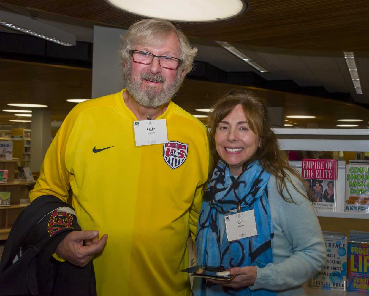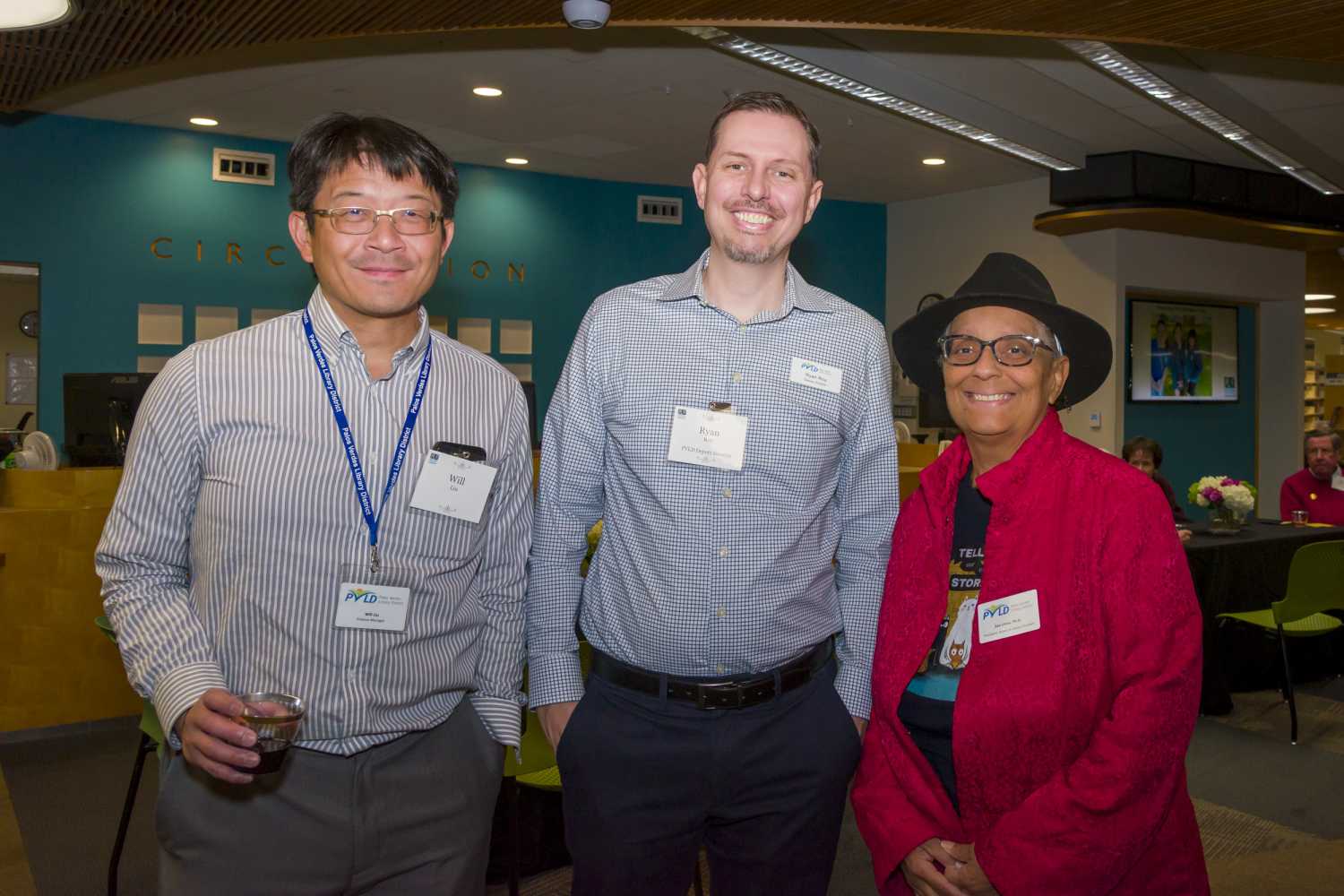 The exquisite wine was donated by Riboli Family Wines. Catering was provided by Lunada Kitchen, including gourmet meats, cheeses, jams and desserts. Malaga Bank provided raffle items and the Gift Shop offered a 20% discount to all attendees. The Daniel Diercks Jazz Trio set the tone with Sinatra’s “Fly Me to the Moon” before transitioning to more traditional holiday classics. “Whether you want to jump into a new routine, master a new skill, or meet some new people, our PV libraries are a good place to do it,” one of the honored guests observed