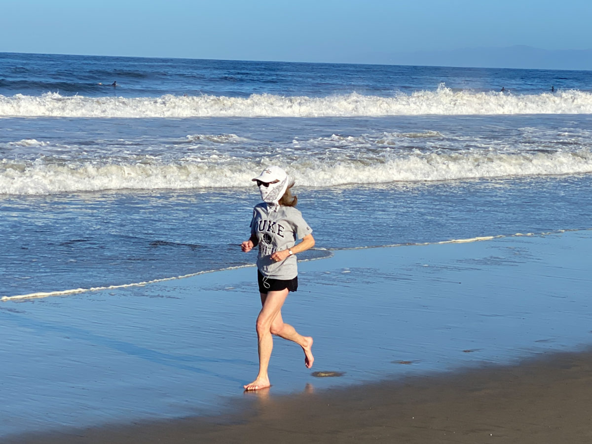 According to a Department of Beaches and Harbors spokesperson Nicole Mooradian, face coverings are not required in the water, but are required on the beach if other people are nearby. If a surfer leaves the water and crosses the beach and there is no one else nearby, the surfer does not have to wear a mask.